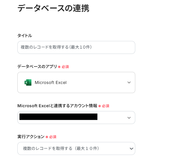 ここでは、指定したMicrosoft Excelからレコードを取得していきます。連絡先を取得するイメージです。