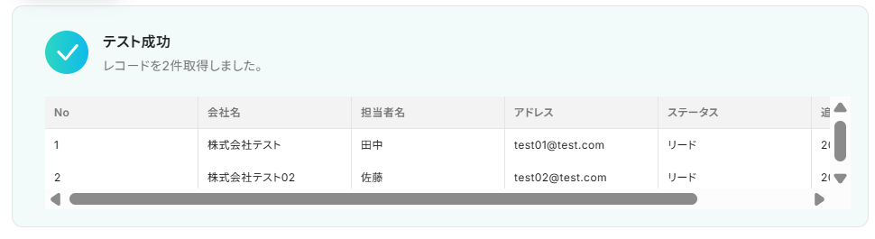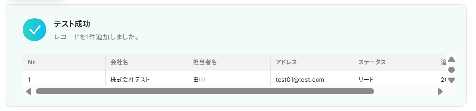 テストを行いましょう。 先程指定したレコードが取得できているか確認してください。