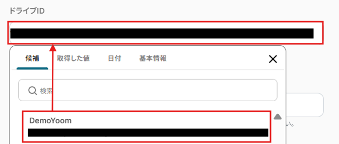 ドライブIDは候補から選択してください。