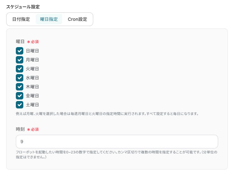 今回は毎朝の9時にトリガーが起動するように設定しました。