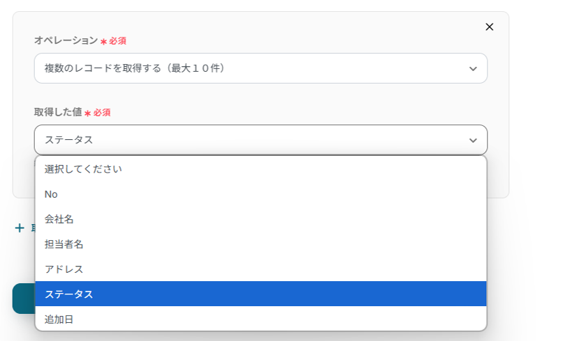 次に「複数のレコードを取得する」をクリックしてください。