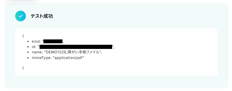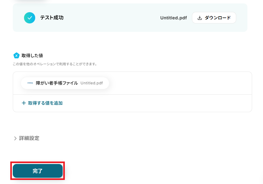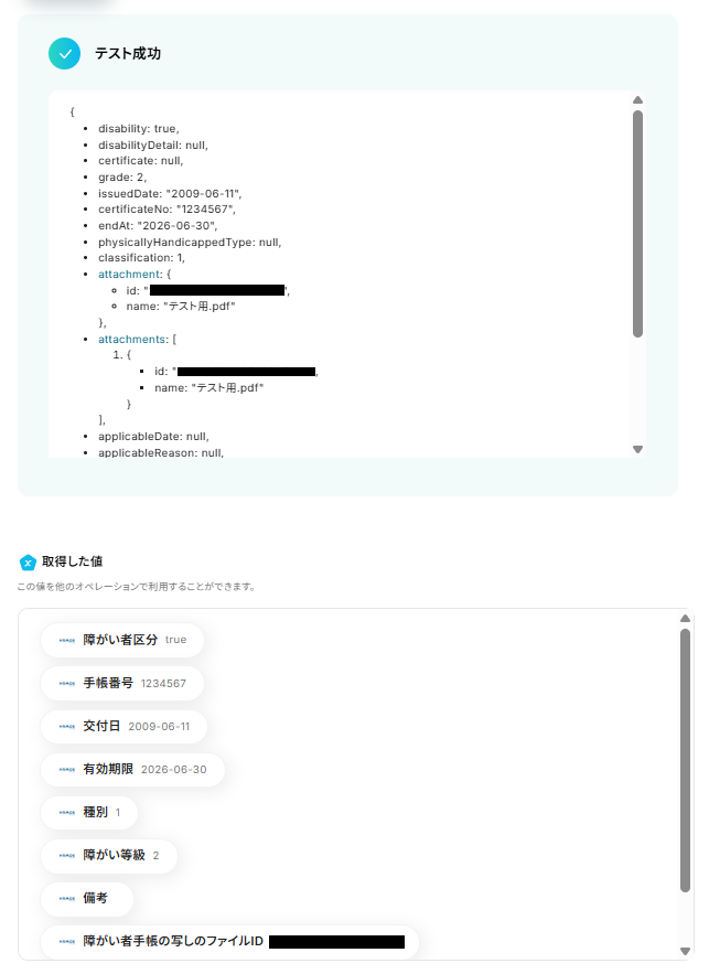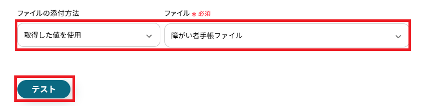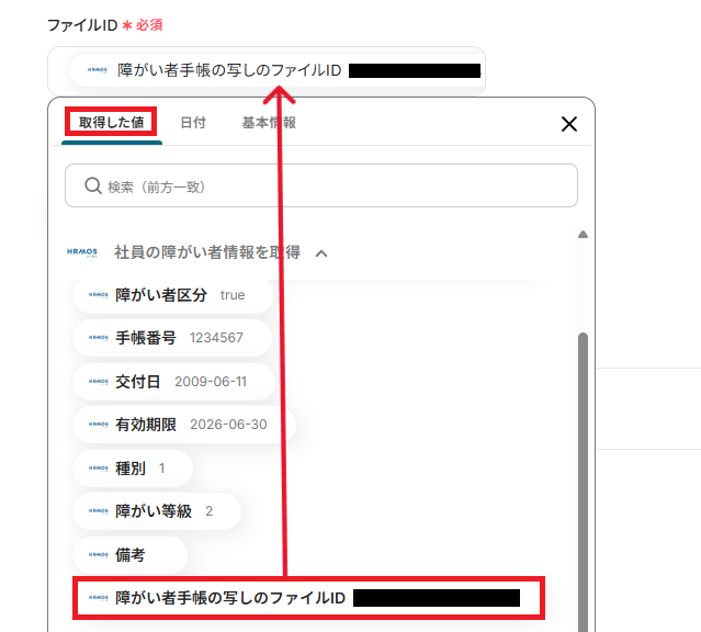 取得した値を基に、障がい者手帳ファイルの取得設定を行います。
