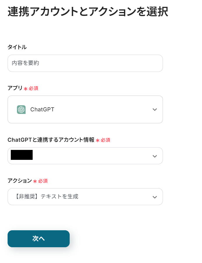 ※ChatGPT(OpenAI)を使ったアクションを動かすには、OpenAIのAPI有料プランに契約しておく必要があります。
