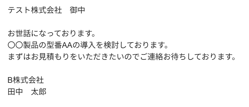 テスト用にGmailに以下のようなメールを送信しておきます。