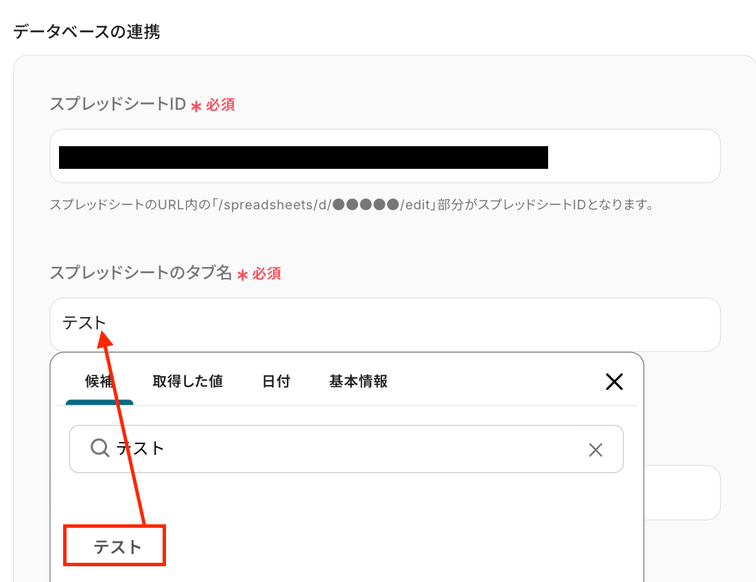 - Googleフォームのトリガー設定では、連携したい任意のフォームIDを指定できます。また、名前やメールアドレス、希望日時など、フォームから取得したい情報を任意で設定してください