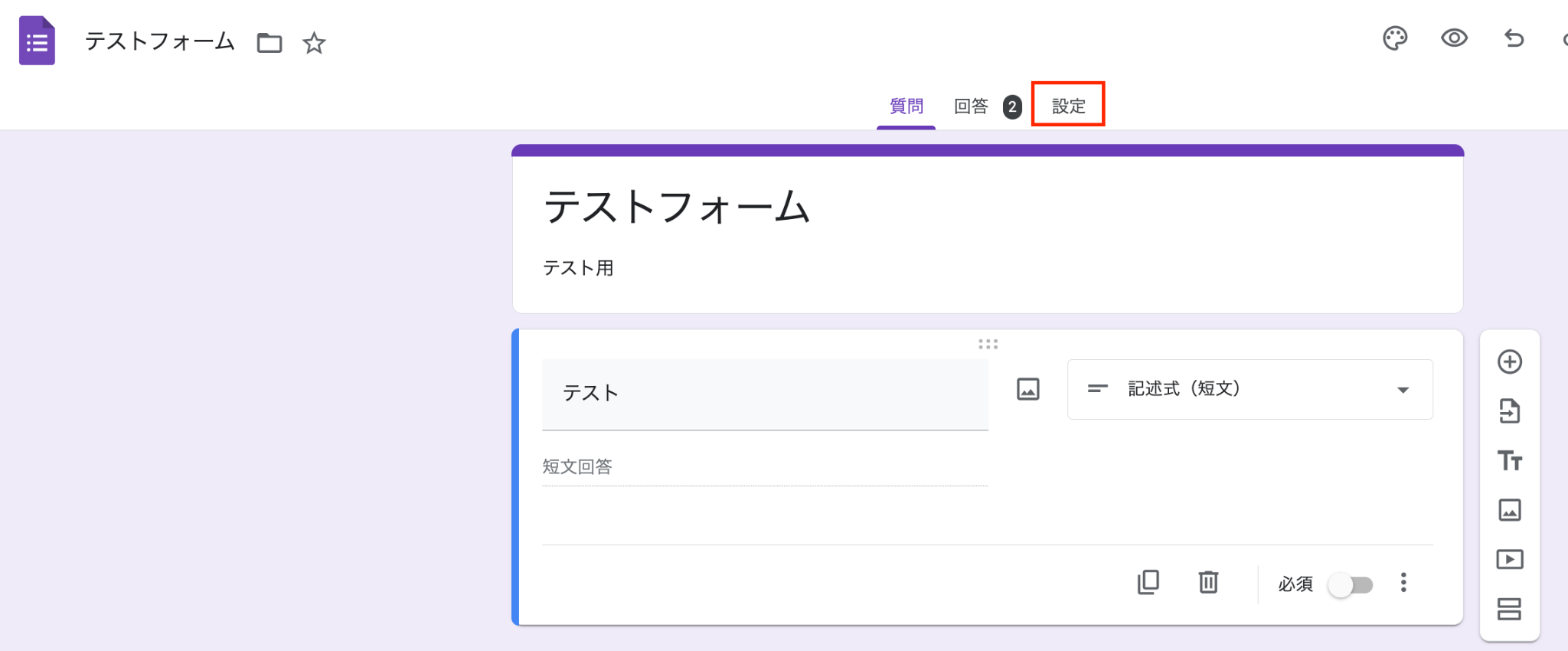 設定を終えたら、必ずフォームにテスト回答をしてくださいね。