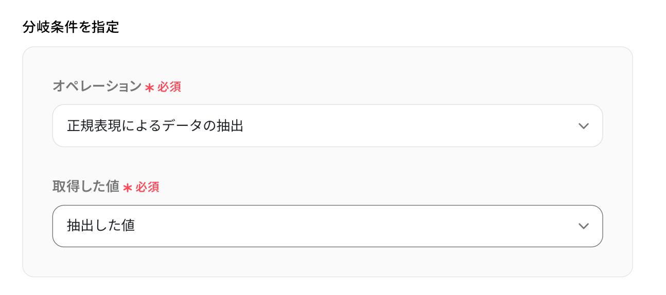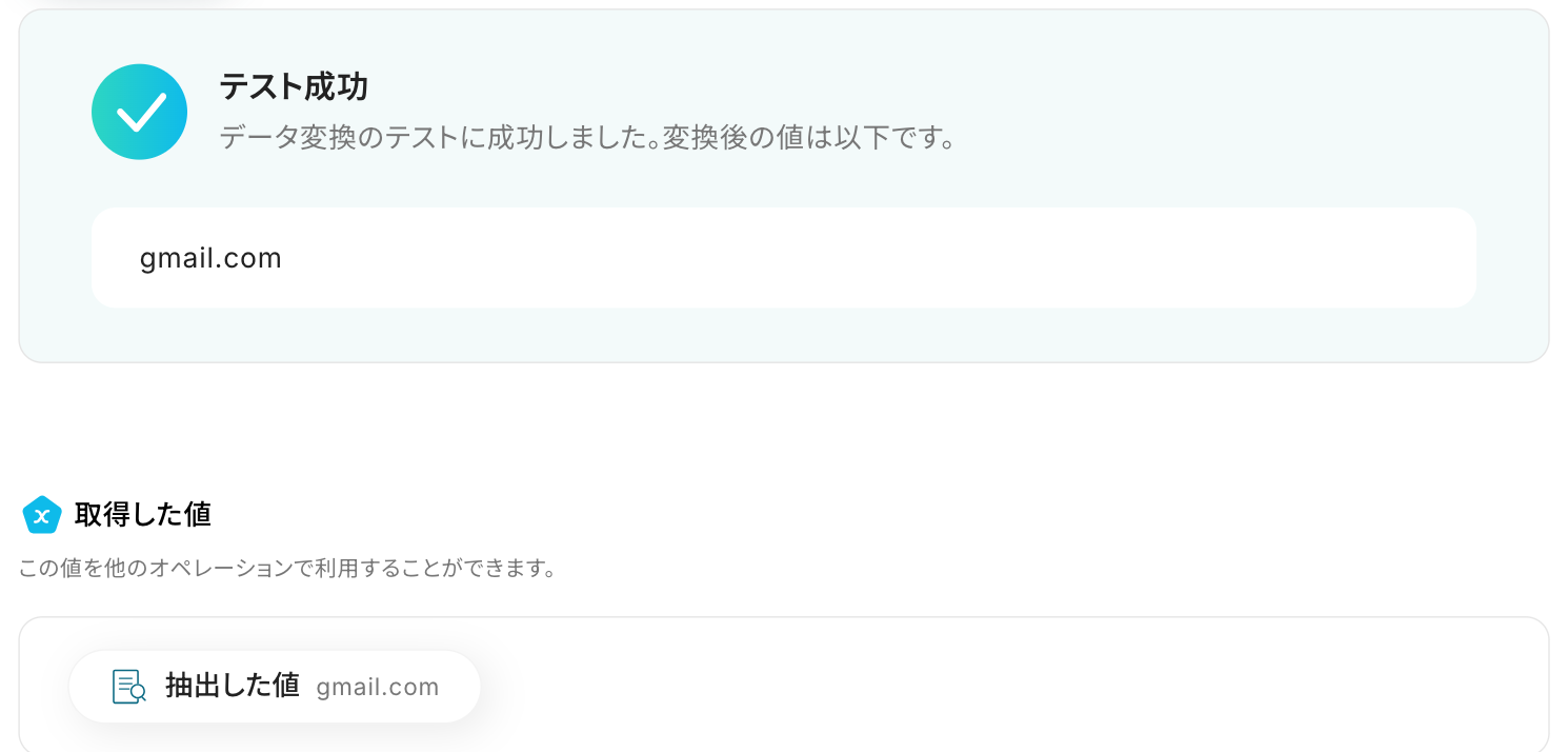 - 続いて、オペレーションでデータ抽出機能を設定し、正規表現を用いて回答からメールアドレスのドメインを取得します