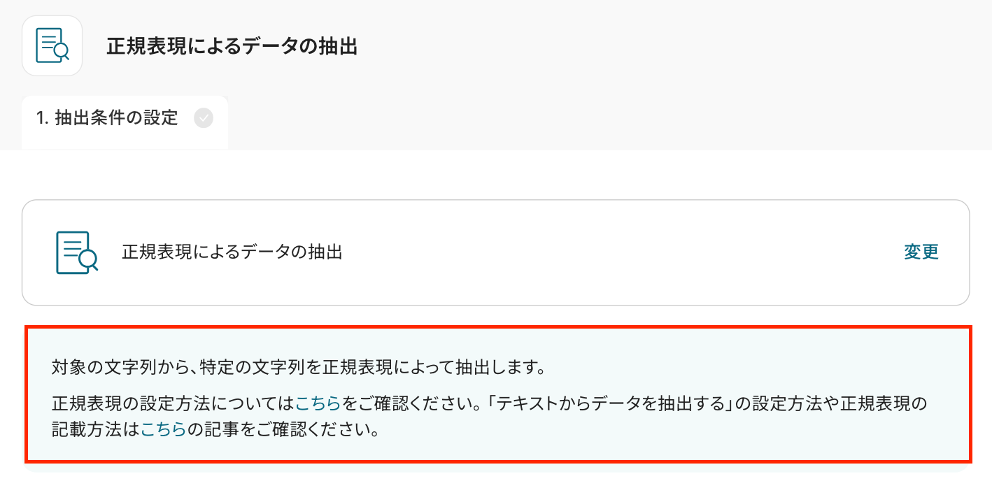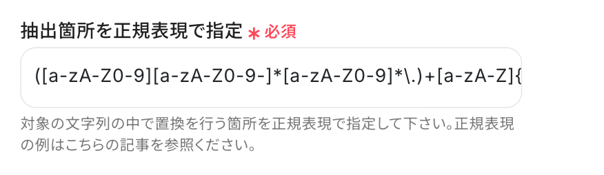 「抽出箇所を正規表現で指定」は、デフォルトで設定しているので、特段操作は不要です。