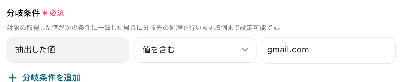 - 次に、分岐機能を設定し、ドメインの形式が特定条件に合致する場合とそうでない場合でその後の処理を分けます