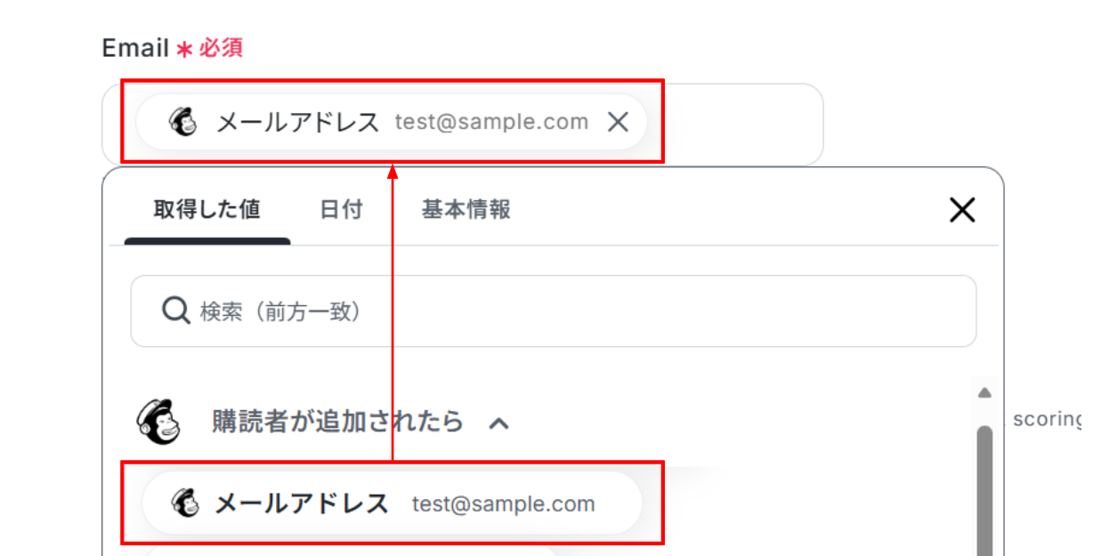 分岐機能では、特定のファイル名や拡張子など、処理対象としたいファイルの条件を任意で設定してください Mailchimpにコンタクトを追加する際に、OCRで抽出したどのテキスト情報を、どのフィールド(氏名、メールアドレスなど)に紐付けるかを任意で設定してください ■注意事項