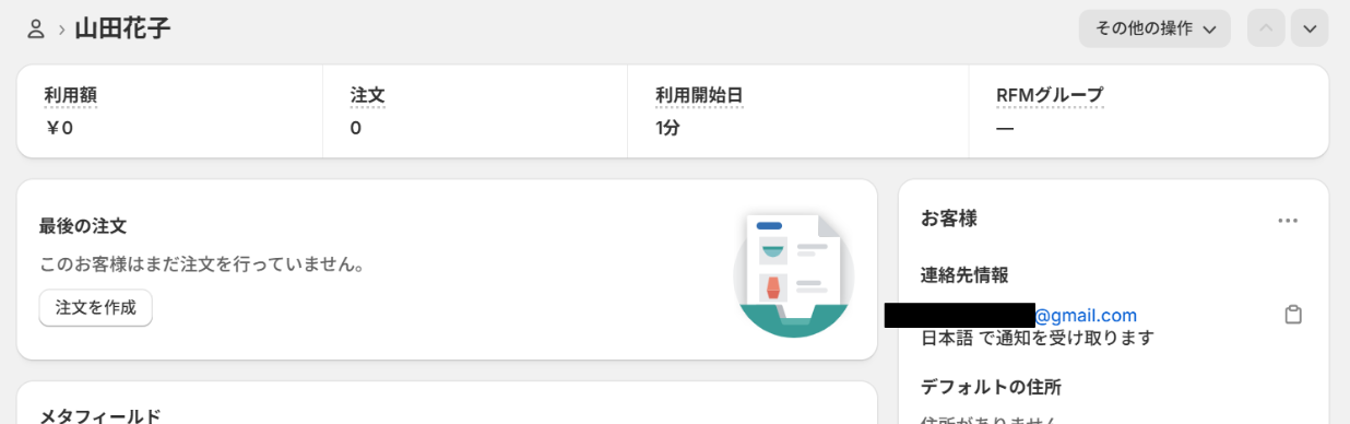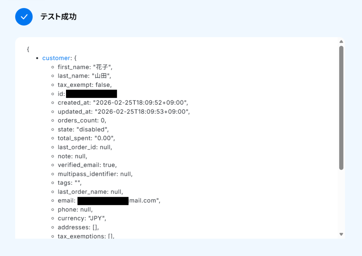 テストに成功すると、Shopifyに顧客情報が登録されます! Yoomに戻って「完了」をクリックしましょう。
