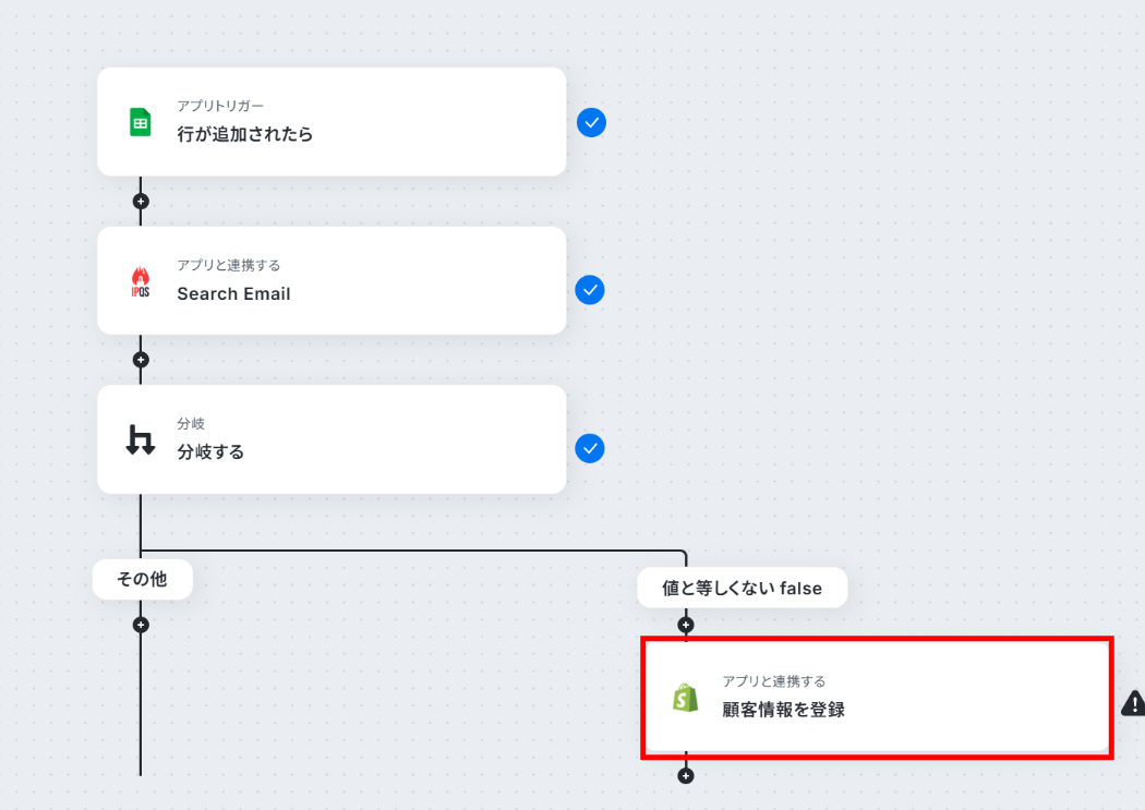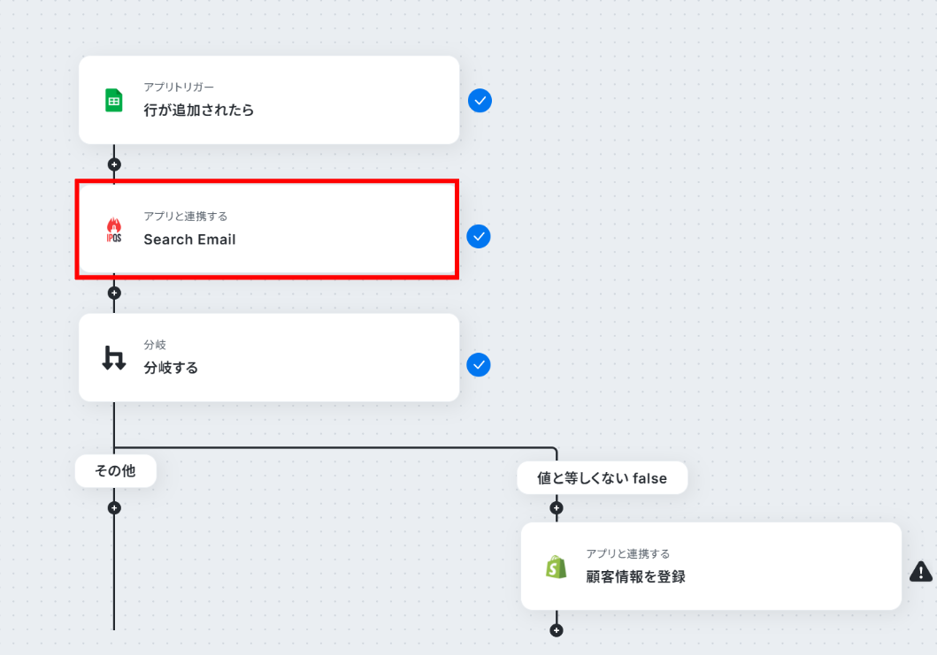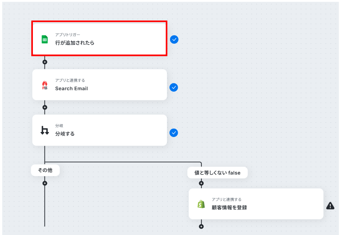 Google スプレッドシートとIPQualityScoreを連携するフローを作ってみよう それではここから代表的な例として、Google スプレッドシートに行が追加されたら、IPQualityScoreでEmailの有効性を検証し、その結果をもとにShopifyに顧客情報を自動で登録するフローを解説していきます!