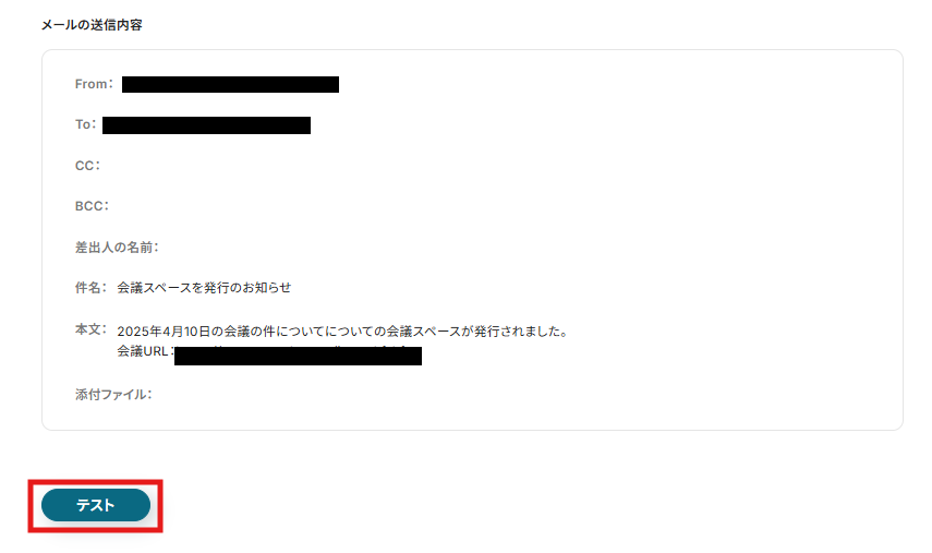 To:Google Meetの会議スペース作成の通知先となるメールアドレス