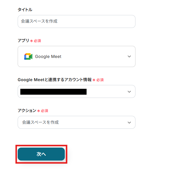 ステップ4: Google Meetのアクション設定