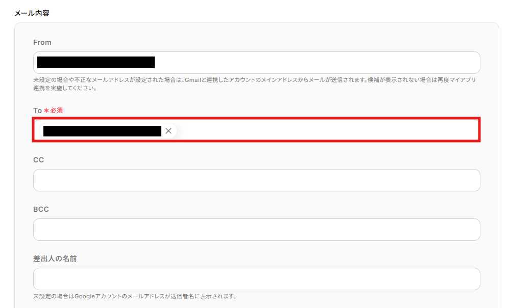CC/BCC:To以外に通知したい人のメールアドレス