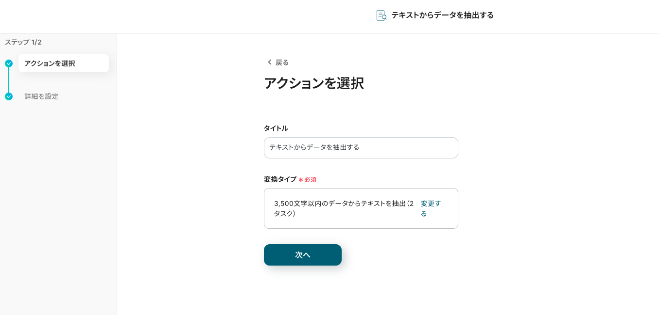 ステップ4:テキストからデータを抽出する「テキストからデータを抽出する」