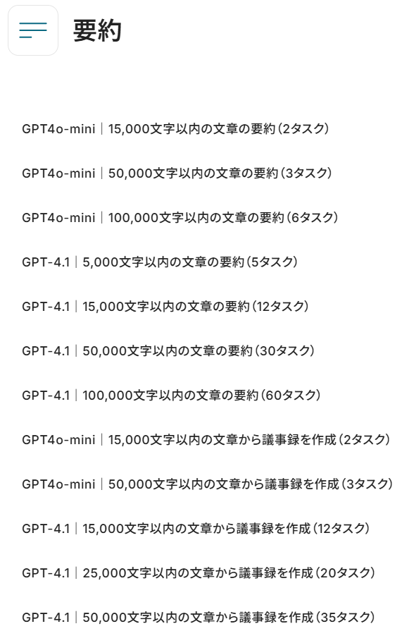 それぞれ()内のタスクを消費しますので、使用プランやデータの容量にご注意ください。