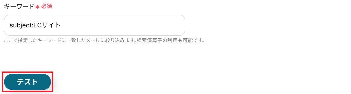 続けて、連携したGmailアドレスに先ほど決めたキーワードを含むテストメールを送信しましょう。