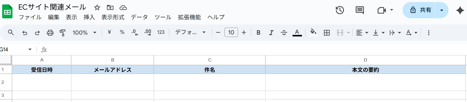 メールの内容をAIで要約して、Google スプレッドシートに追加する
