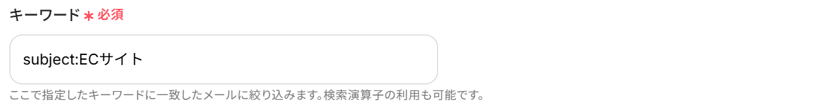 今回は、件名の単語やフレーズでメールを検索する「subject:」という演算子を使っています。