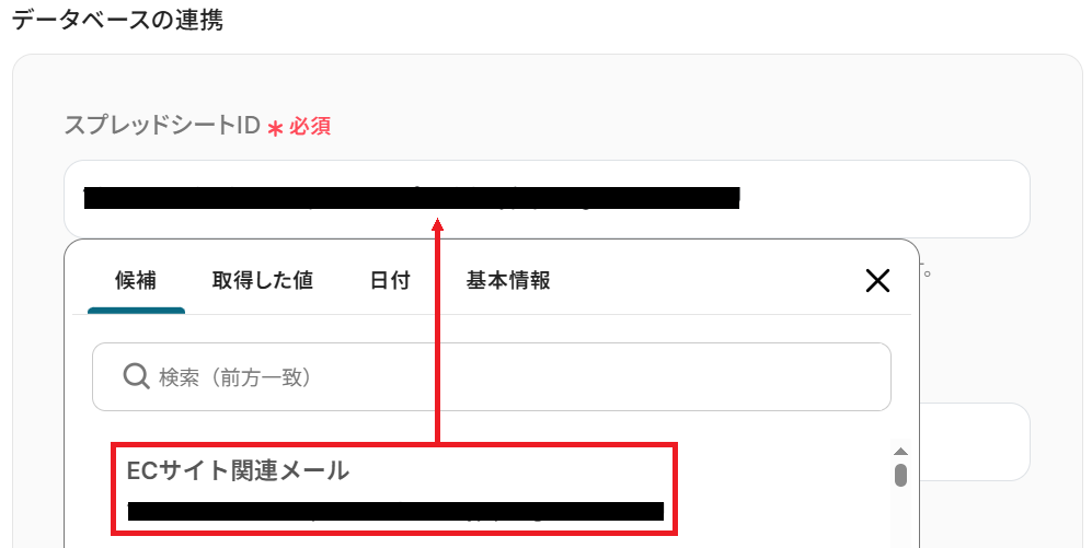 次に、先ほど用意したシートのスプレッドシートIDを候補から選択しましょう。