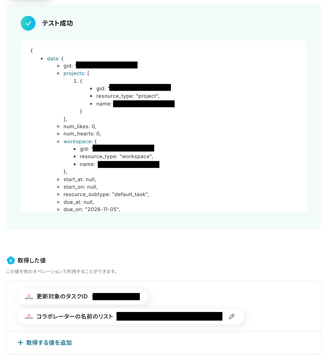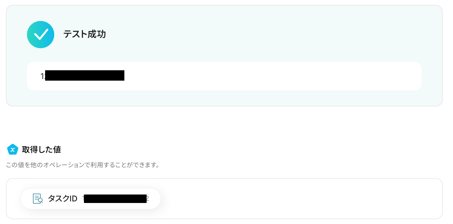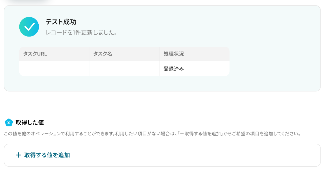 「取得した値」は、先ほどのステップで取得した「タスクURL」を設定しましょう!