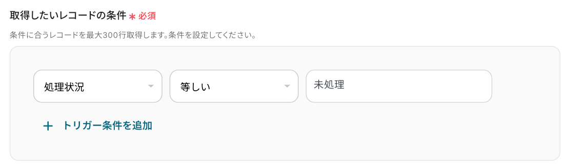 今回は「処理状況」が「未処理」のレコードを取得するように設定します。
