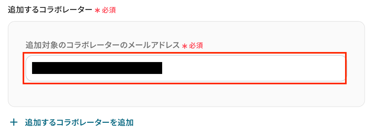 「追加するコラボレーター」:指定したタスクに追加したいコラボレーターのメールアドレスを直接入力してください。