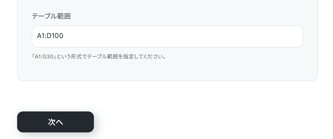 また、Microsoft Excelのテーブル範囲の設定方法は原則Google スプレッドシートと同様です。
