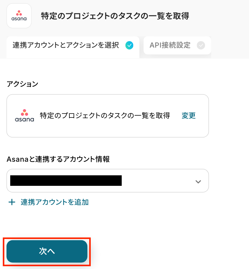 ここでは、特定のプロジェクトのタスク一覧を取得する設定を行います。