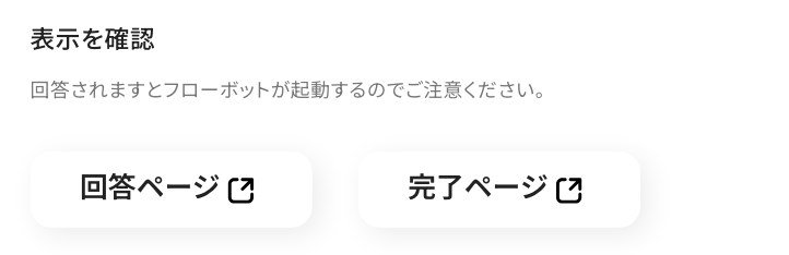 「回答ページ」や「完了ページ」をクリックすると、回答する際に表示される画面や完了画面のプレビューを確認できます。