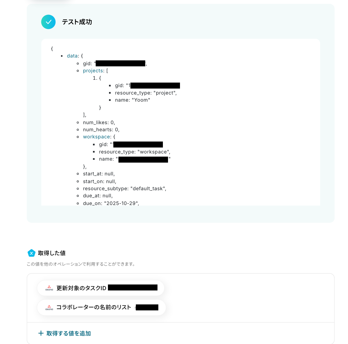 問題がなければ、「保存」をクリックします。これで、Asanaのアクション設定は完了です!