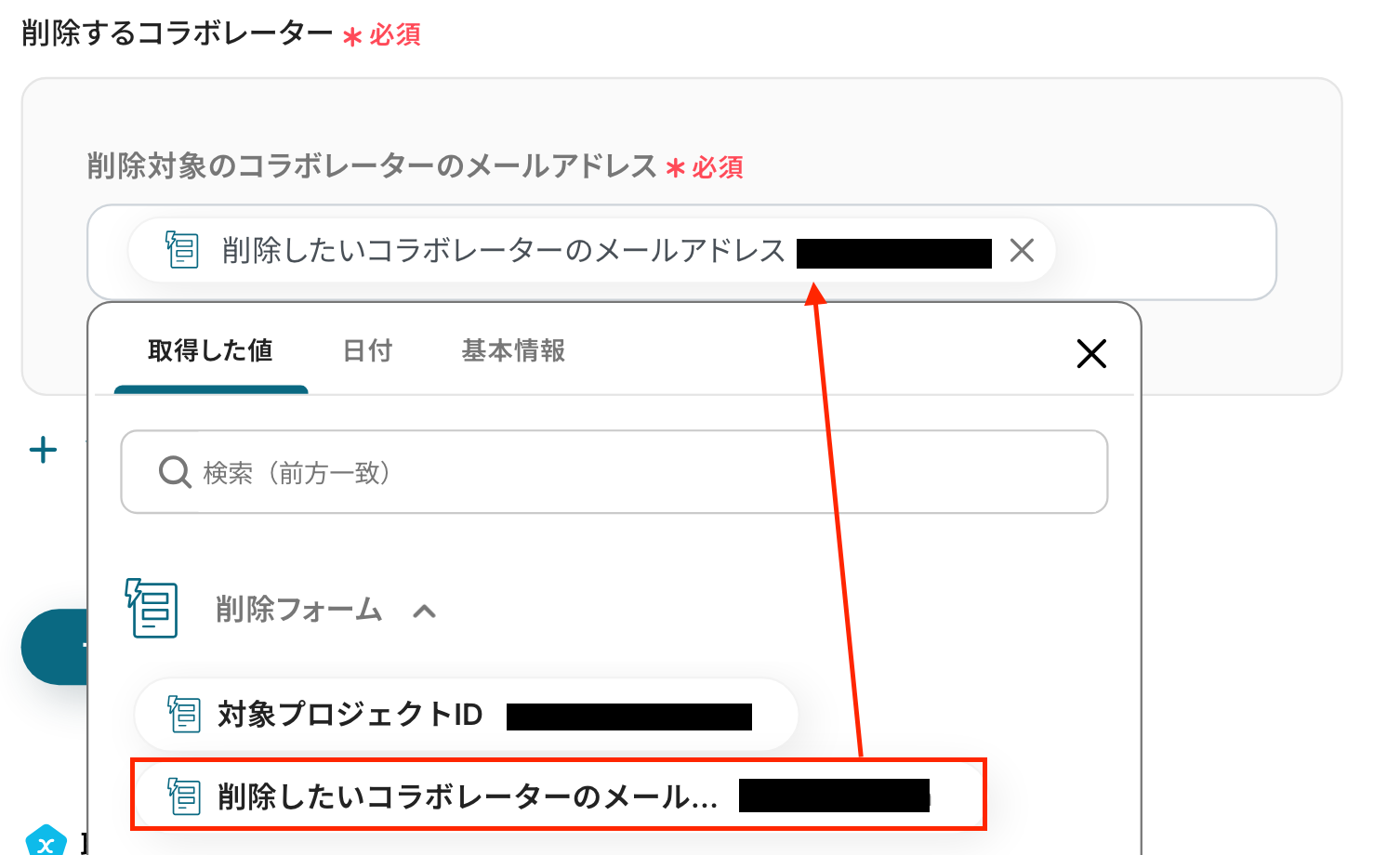 A:今回のフローでは、フォームに入力された「削除したいコラボレーターのメールアドレス」と一致するユーザーが、Asanaのプロジェクト内タスクに登録されている場合、そのユーザーが自動的に削除されます。
