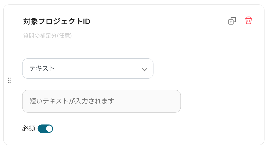 質問形式は、上記の画面では「テキスト」と設定されていますが、プルダウンを開いて表示される項目の中から選ぶことができます。