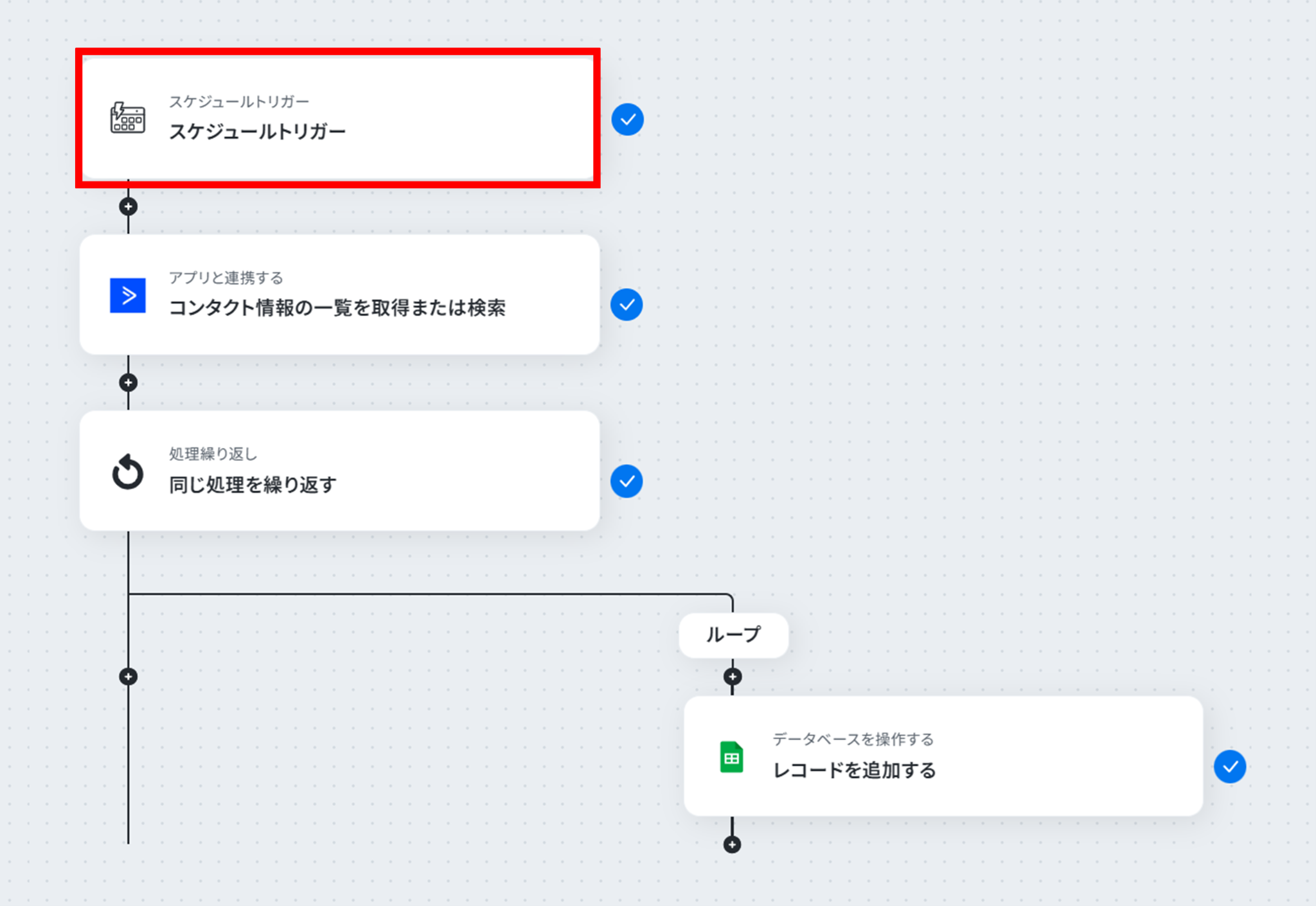 それではここから代表的な例として、毎日ActiveCampaignのコンタクト情報を一括取得し、Google スプレッドシートに自動で保存するフローを解説していきます!