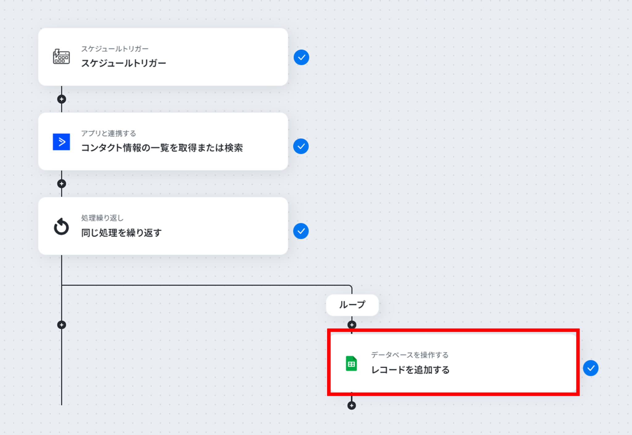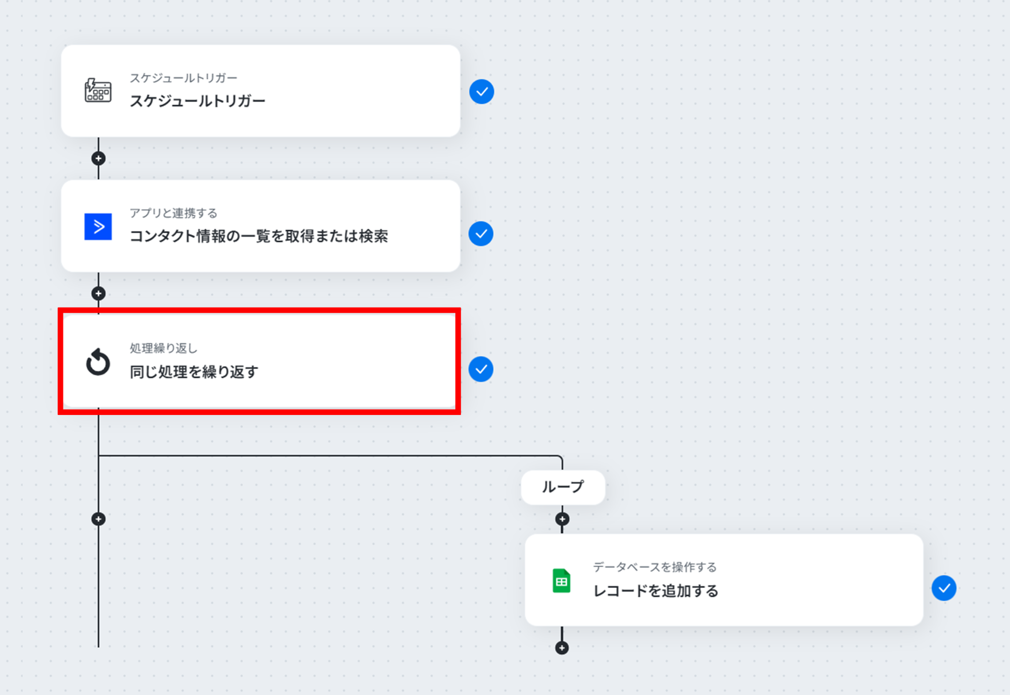 ※「同じ処理を繰り返す」オペレーション間の操作は、チームプラン・サクセスプランでのみご利用いただける機能となっております。