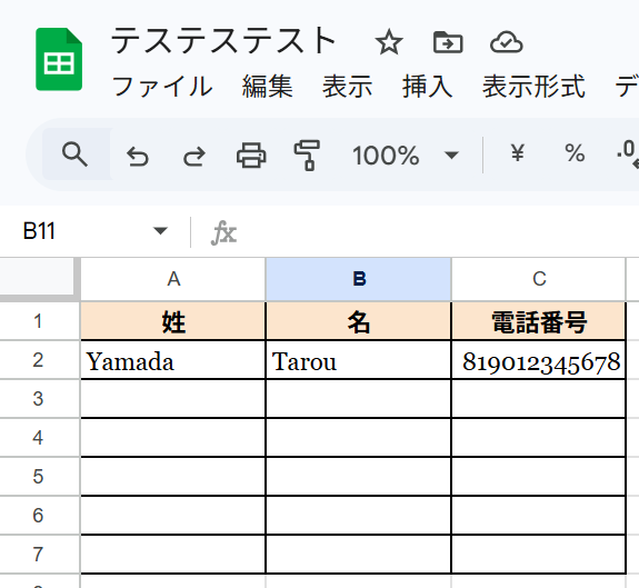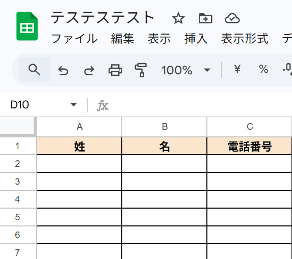 Yoomで設定する前にGoogle スプレッドシートにテスト用のシートを作成しておきましょう!