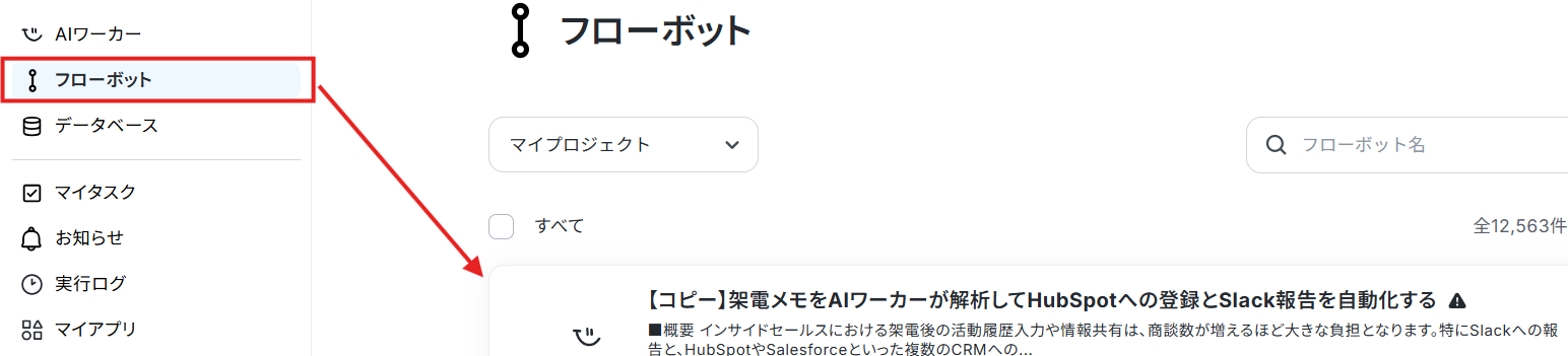 コピーしたテンプレートはフローボットに保存されているので、ここからも開くことができます。