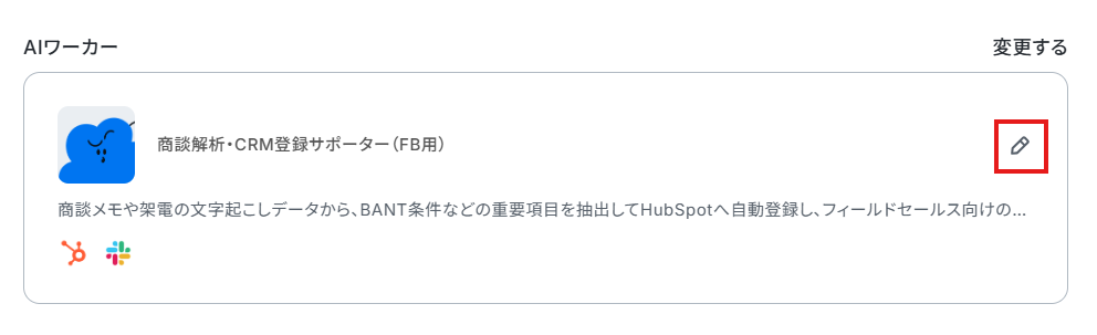 画面右側にある鉛筆マークをクリックすると、AIワーカーの設定画面が表示されます。