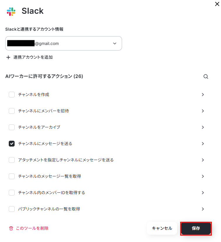 業務フローにあわせて、AIワーカーに許可するアクションの設定を行ってください。