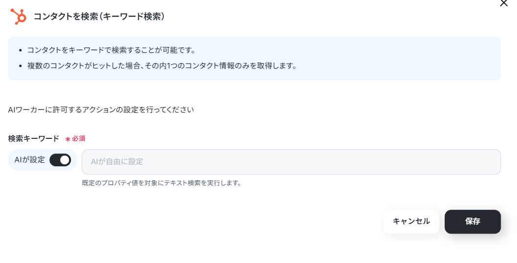 AIワーカーに許可するアクションの詳細設定です。どちらも「AIが設定」のままにして「保存」します。