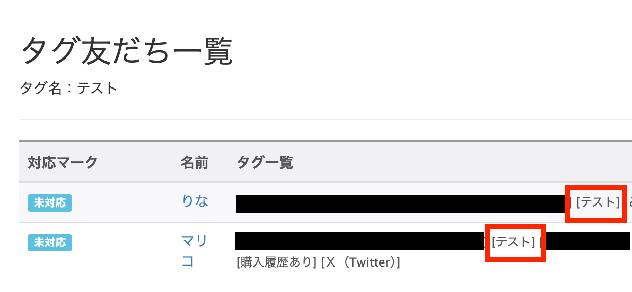 確認してみましょう!2人の友だちに同様のタグが一括追加されました!