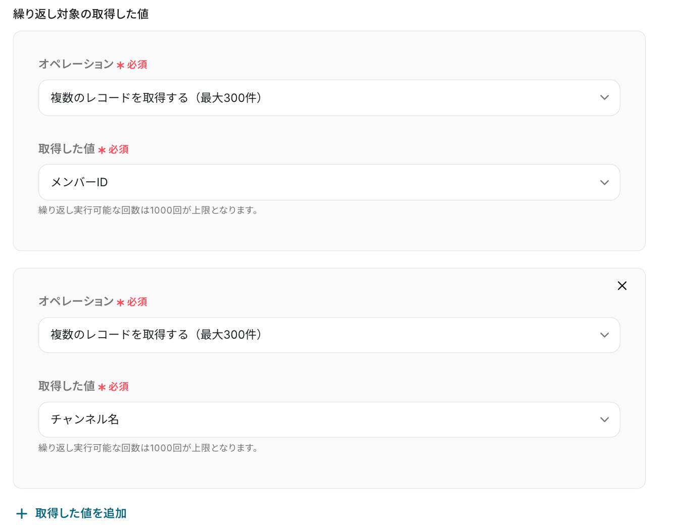 「オペレーション」は、「複数のレコードを取得(最大300件)」を選択してください。