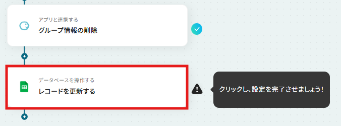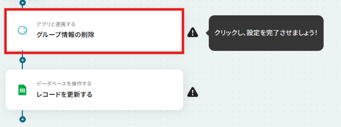 フローに戻り、「グループ情報の削除」のアイコンをクリックします。