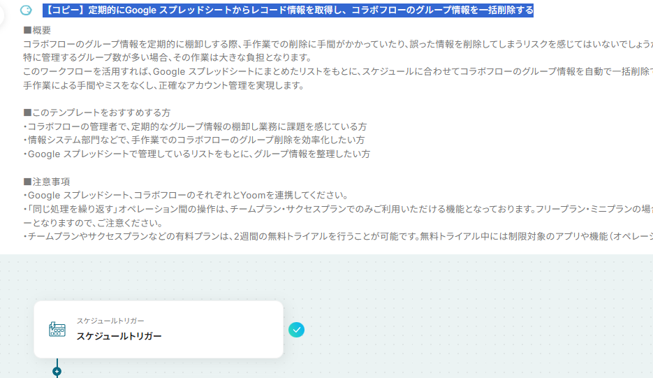 それではここから代表的な例として、定期的にGoogleスプレッドシートからレコード情報を取得し、コラボフローのグループ情報を一括削除するフローを解説していきます!
