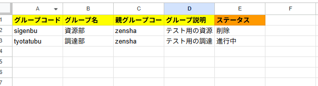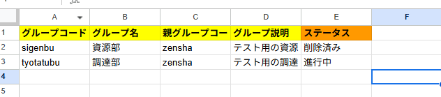 Google スプレッドシートを確認すると、ステータスが「削除済み」に変更されています。