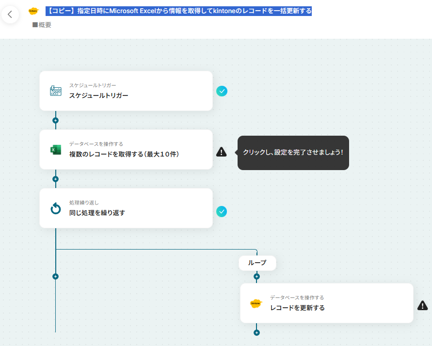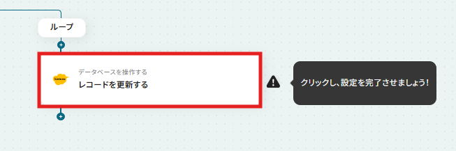 - 次に、ループ機能を用いて、取得したレコード情報をもとにkintoneのレコードを1件ずつ更新する処理を設定します