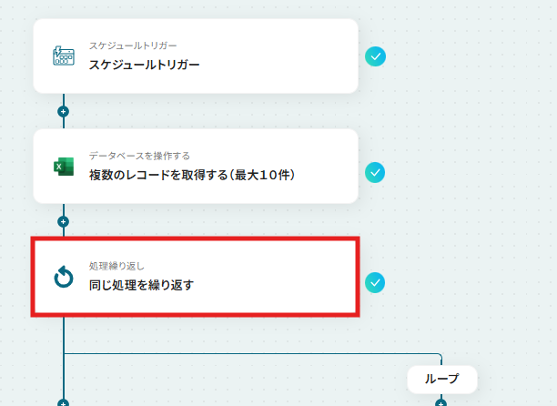 フローに戻り、「同じ処理を繰り返す」のアイコンをクリックします。