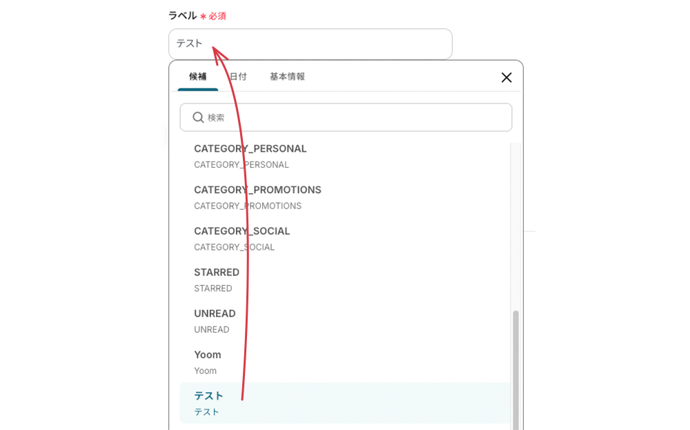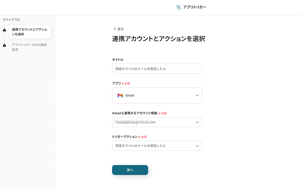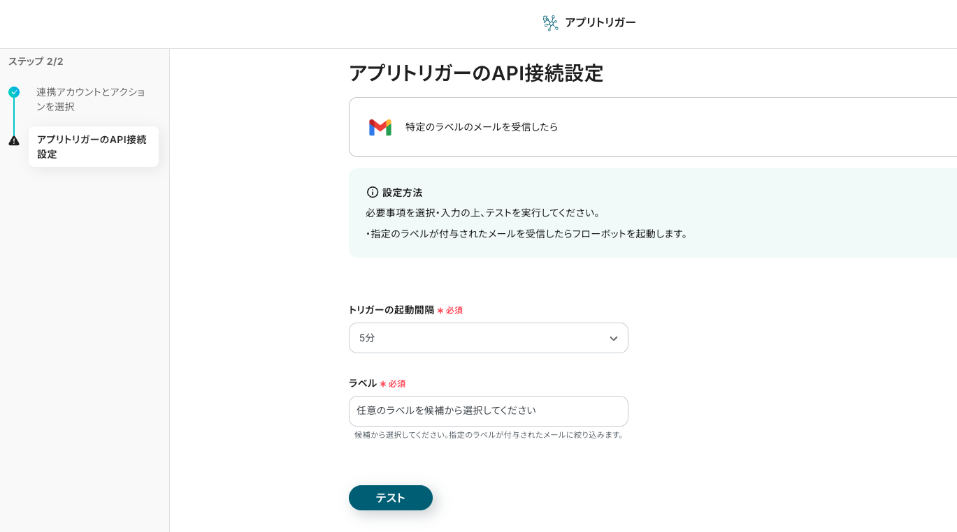 ステップ3:アプリトリガー「特定のラベルのメールを受信したら」