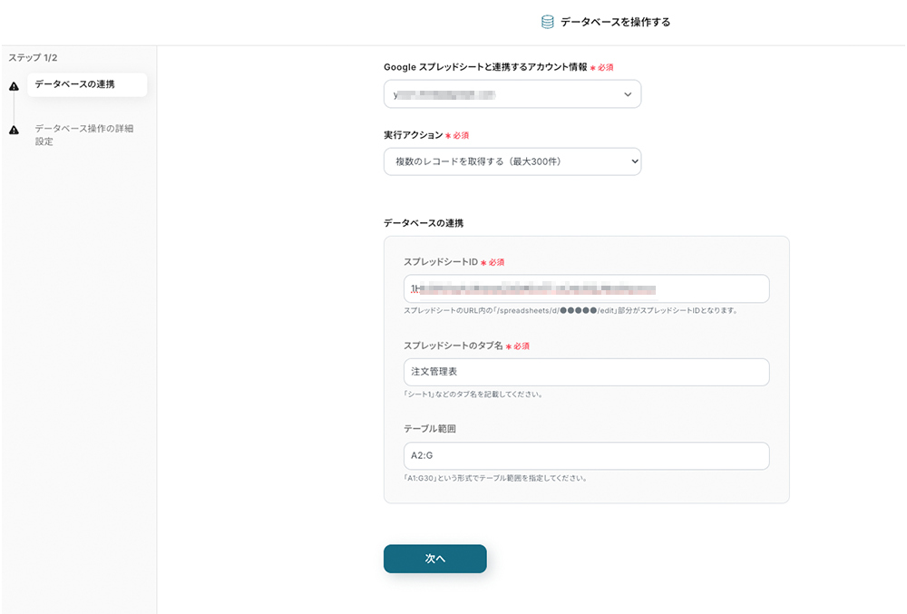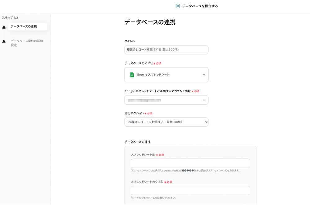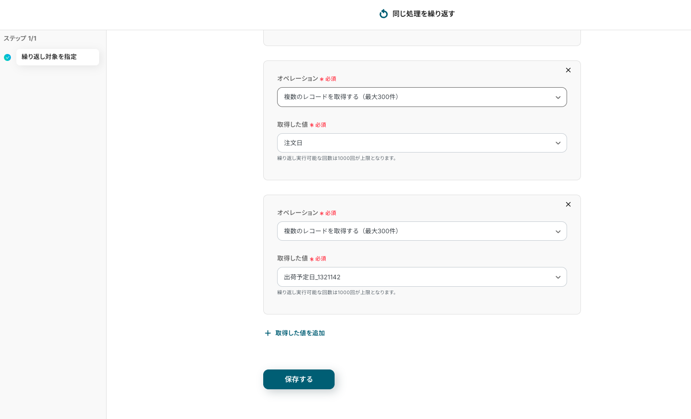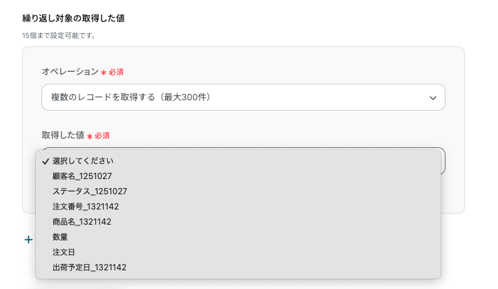 - 複数のレコードを取得する(最大300件)を選択します。